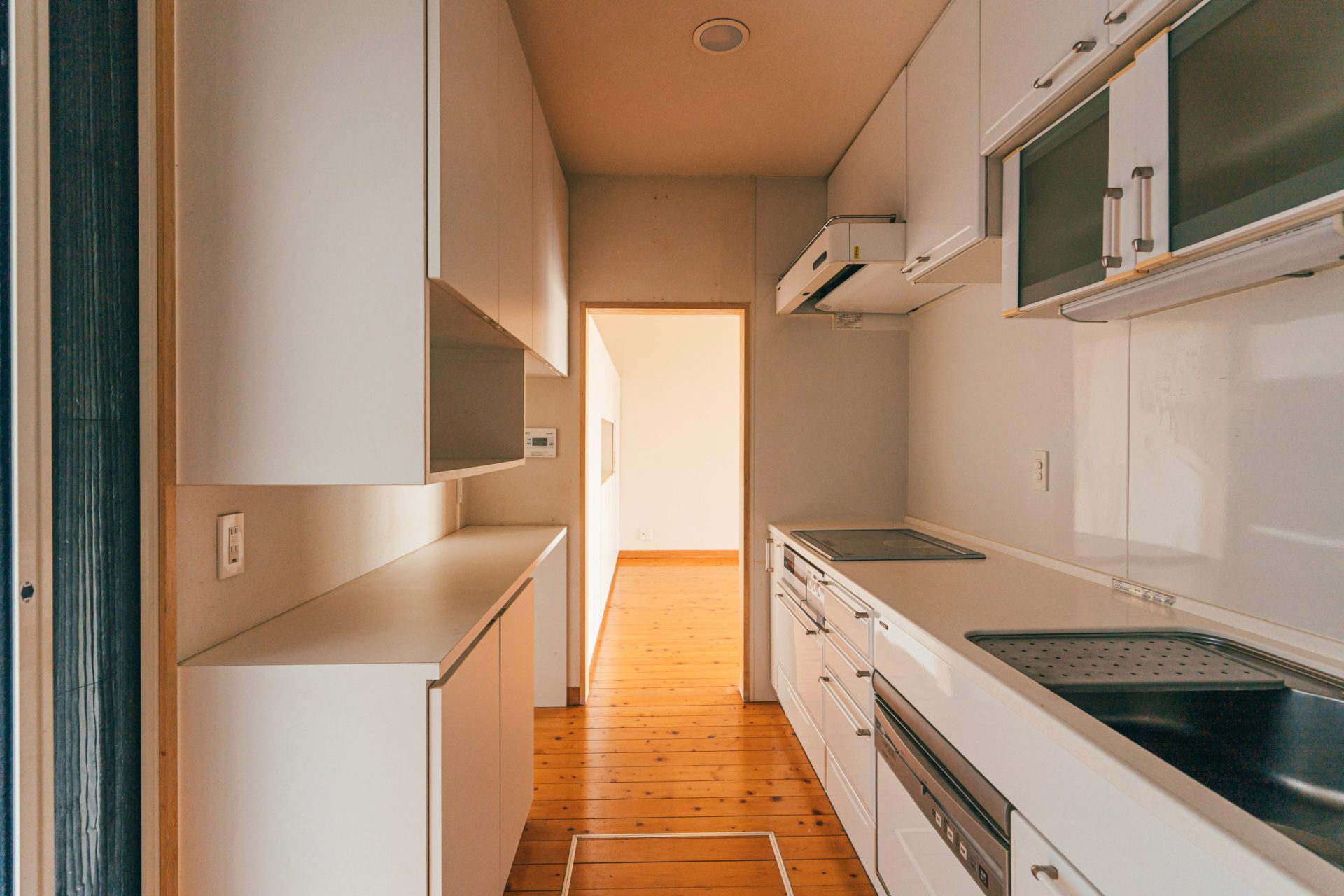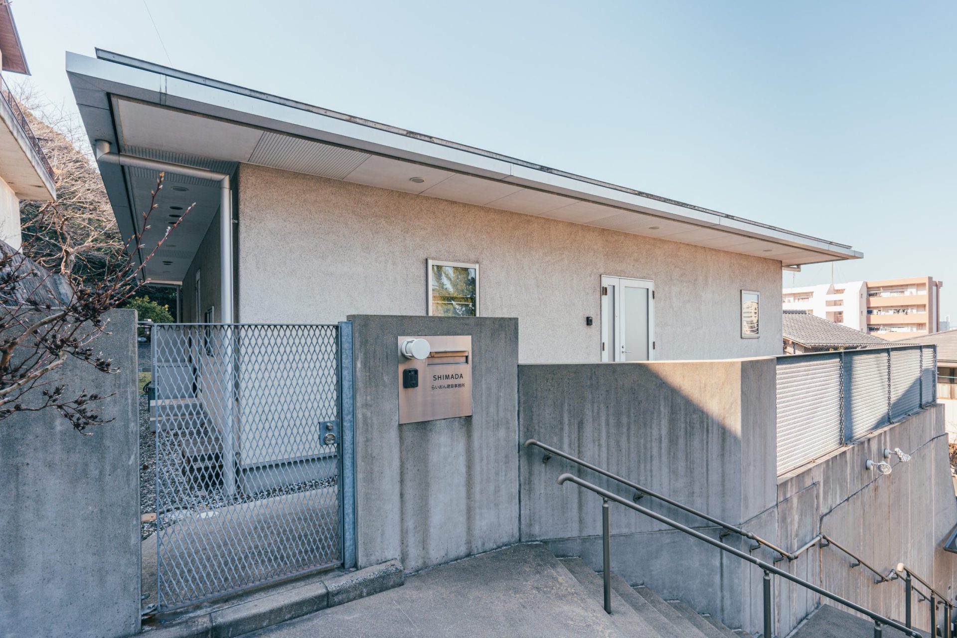 「小文字の家」は50代の夫婦とその母の3人が暮らすために福岡県北九州市に建てられた住宅です。敷地の南西側に木々が生い茂る森、北側は崖になっており、自然豊かで眺望が良い、気持ちの良い場所です。