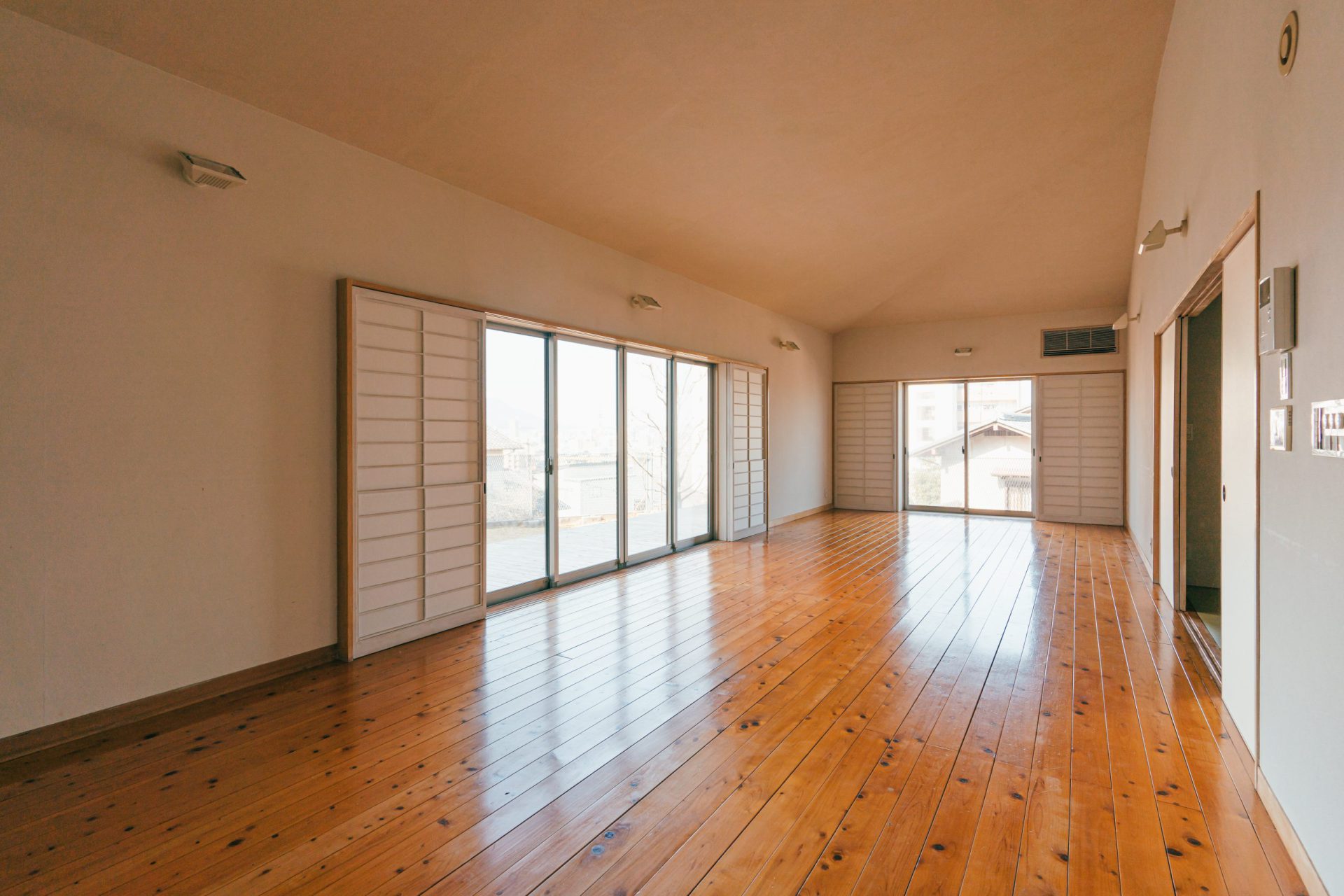 広々とした縁側はリビングと寝室をつなぐようにL字に取り囲んでいます。