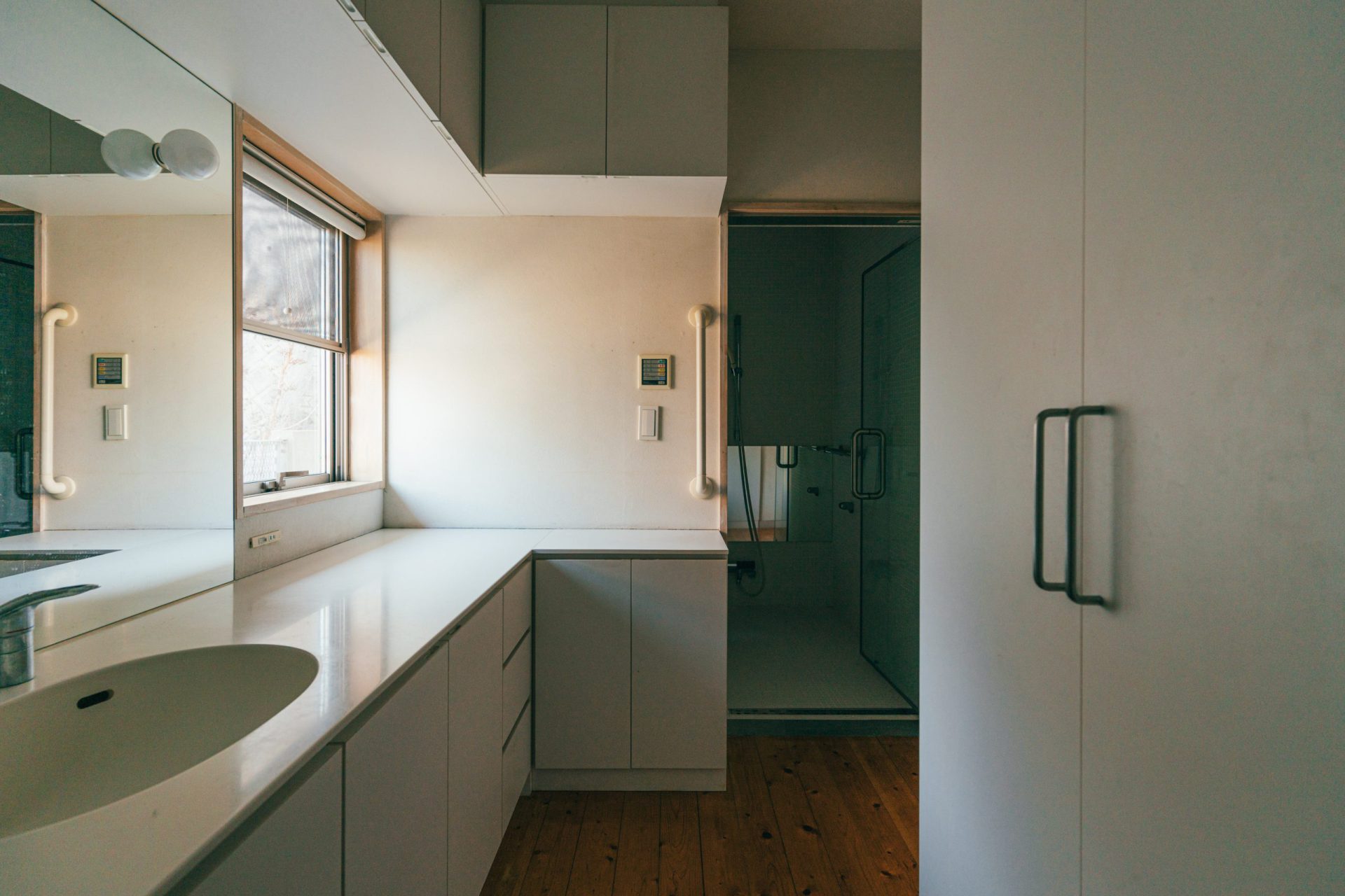 水回りは東側に集められ、リビングとの生活動線や廊下の風通しもしっかりと考えて設計いたしました。