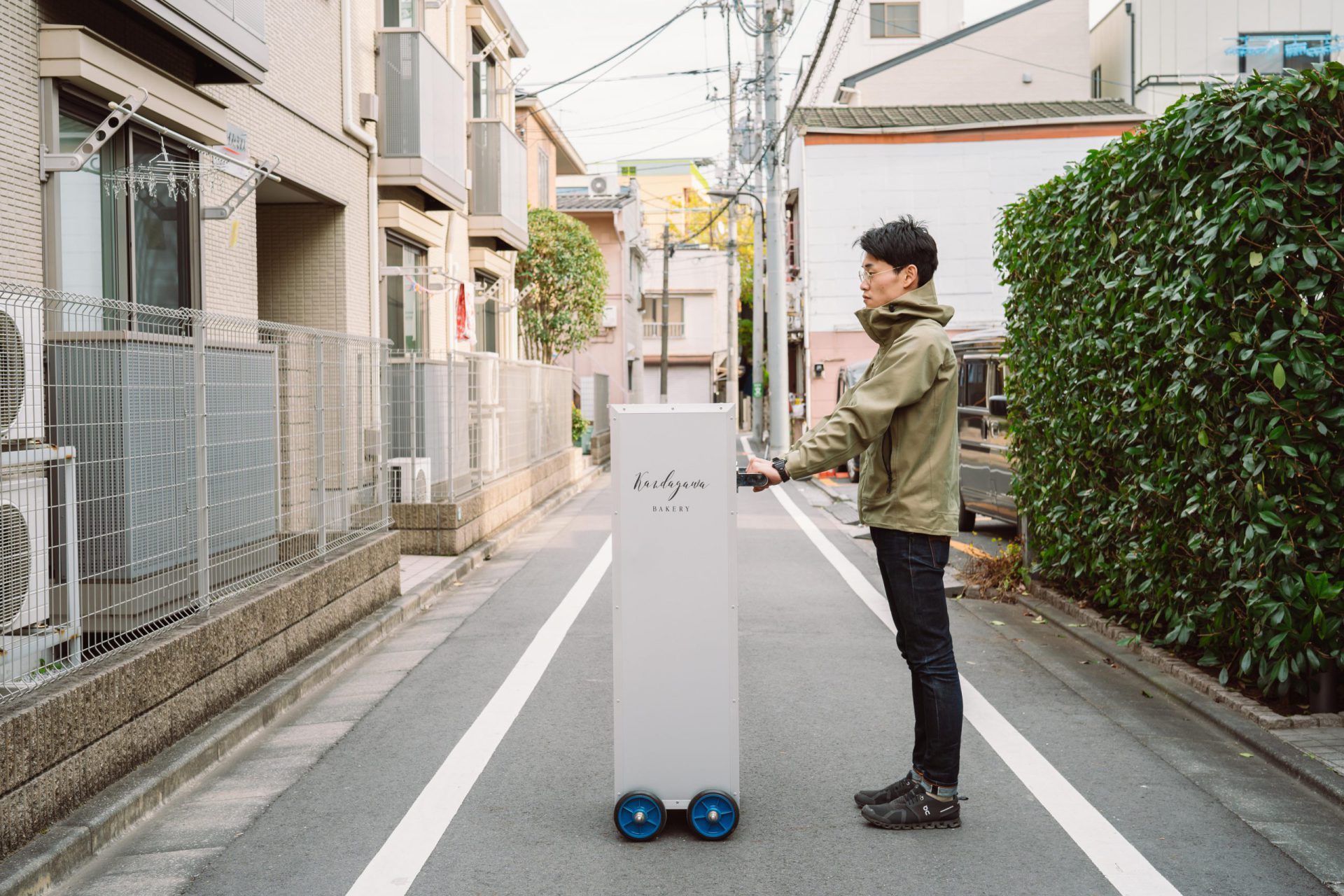 ひとりでもパンを移動販売できる、軽くてスタイリッシュなパンカート