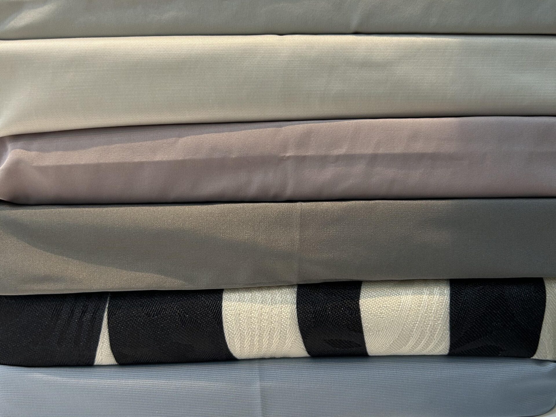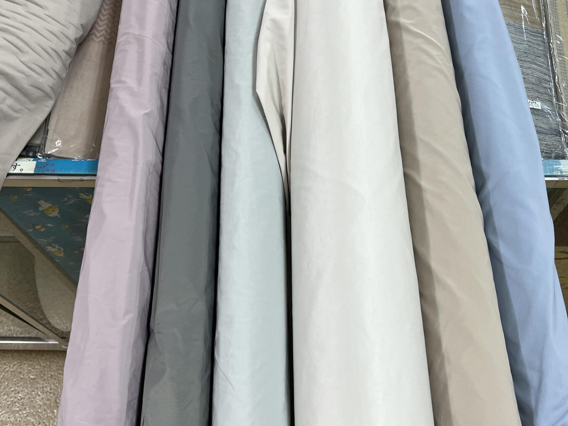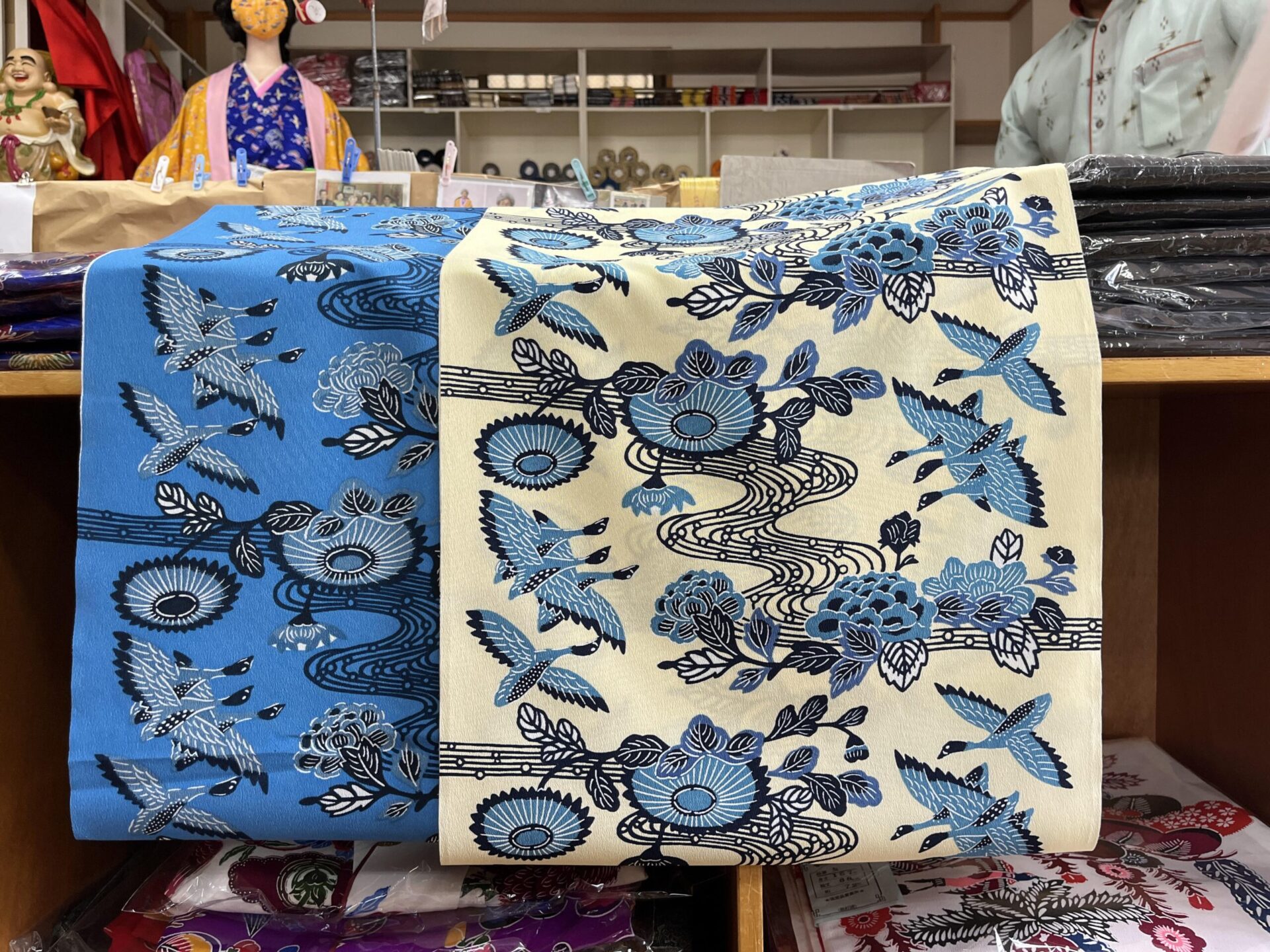 沖縄の生地屋さん生地選びを行い、サンプルと取り寄せて何度も検討を重ねました。